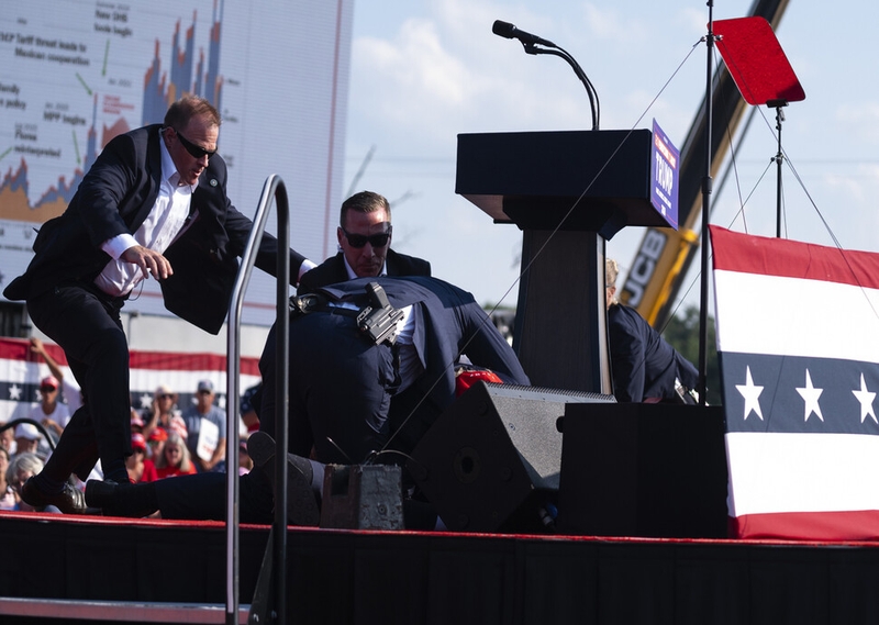 그는 피격 뒤 경호원들에 둘러싸여 “신발 좀 달라”고 소리친 이유에 대해서도 말했다. 총격 시작 뒤 “(비밀경호국) 요원들이 (보호를 위해) 나를 매우 세게 밀쳐 신발이 벗겨졌다. 나는 평소 신발을 꼭 맞게 신는다”고 웃으며 말했다. 그는 총격이 시작되자마자 비밀경호국 요원들이 ‘라인배커’(미식축구에서 상대팀 선수들에게 태클을 걸며 방어하는 수비수)처럼 날아들어 왔다며 놀라움을 표시했다. 그는 피격 뒤 일어서며 손을 번쩍 들어 올린 이유에 대해 “사람들에게 내가 괜찮다(OK)는 것을 알리기 위해서, 그리고 미국은 계속 굴러가고 우리는 앞으로 나아가고 우리는 강하다는 것을 보여주기 위해서였다”고 말했다.