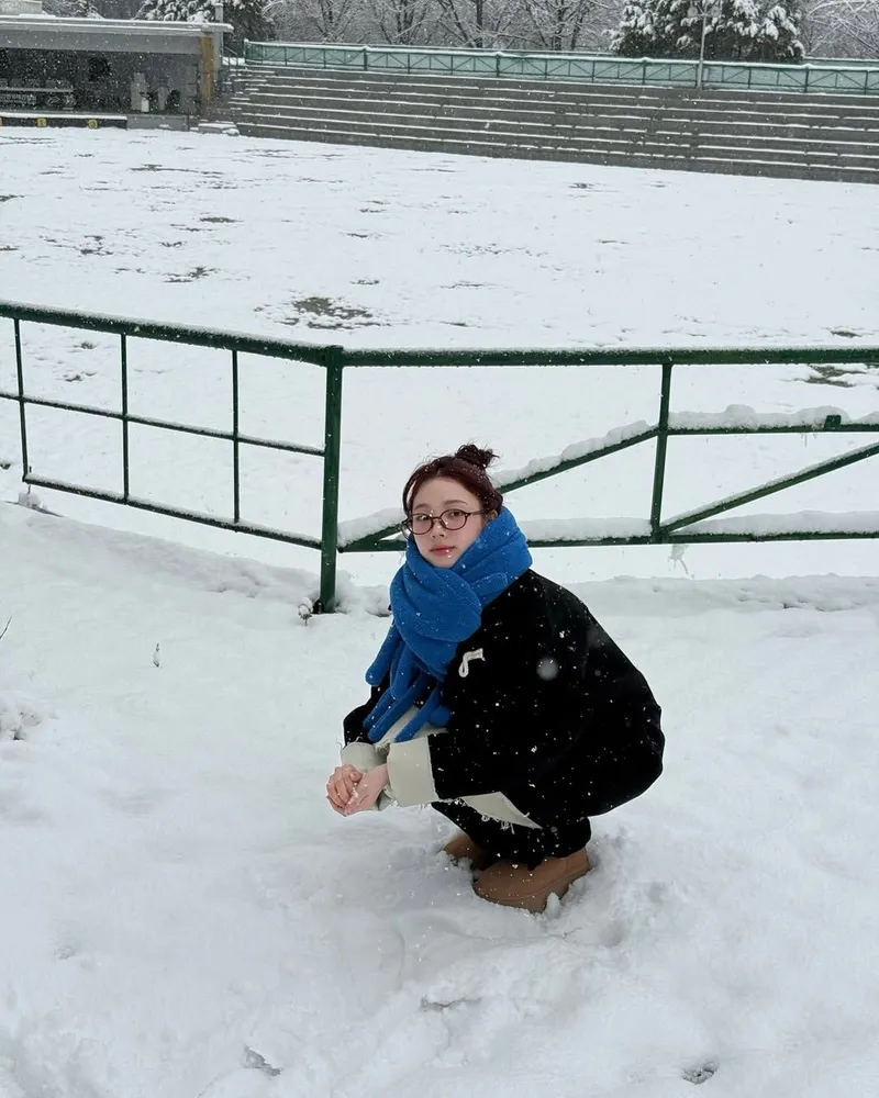 흰 눈이 잔뜩 쌓인 설원에서 편안한 차림새로 사진을 남긴 카리나의 모습에서 가장 눈에 띄는 건 단연 블루 컬러 머플러다. 하얀 눈앞에서 시선을 사로잡을 경쾌한 컬러 포인트 머플러는 옷장에 꼭 있어야 할 에센셜 아이템. 카리나처럼 편안하게 차려입은 데일리 룩에도 단번에 포인트가 되어준다. 벌키한 디자인을 선택하면 더욱 포근한 느낌을 줄 수 있다.
